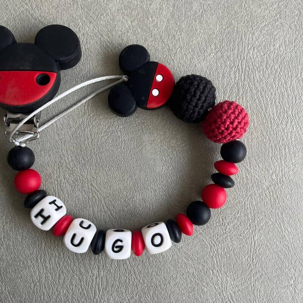 Imagina a tu pequeño llevando siempre consigo un toque de amor y fantasía con este encantador chupetero de Mickey Mouse, hecho especialmente para él. Cada detalle de este accesorio está pensado para acompañar a tu bebé con dulzura y estilo, asegurando que su chupete esté siempre cerca, ¡y con su nombre grabado para que sea aún más especial!
