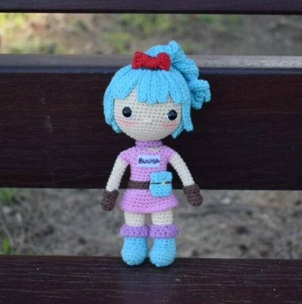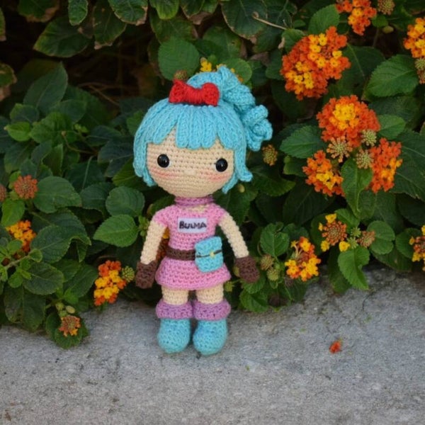-Patrón para tejer a crochet el amigurumi de Bulma, personaje de la serie anime Dragon ball